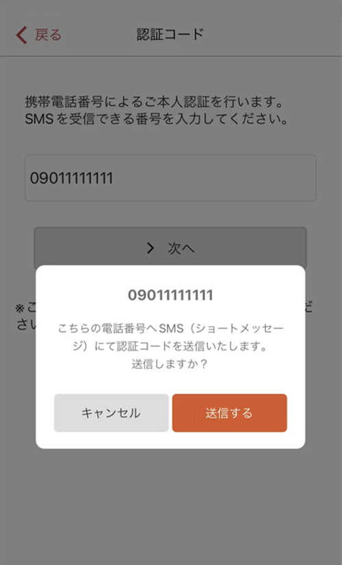 ②SMSで認証